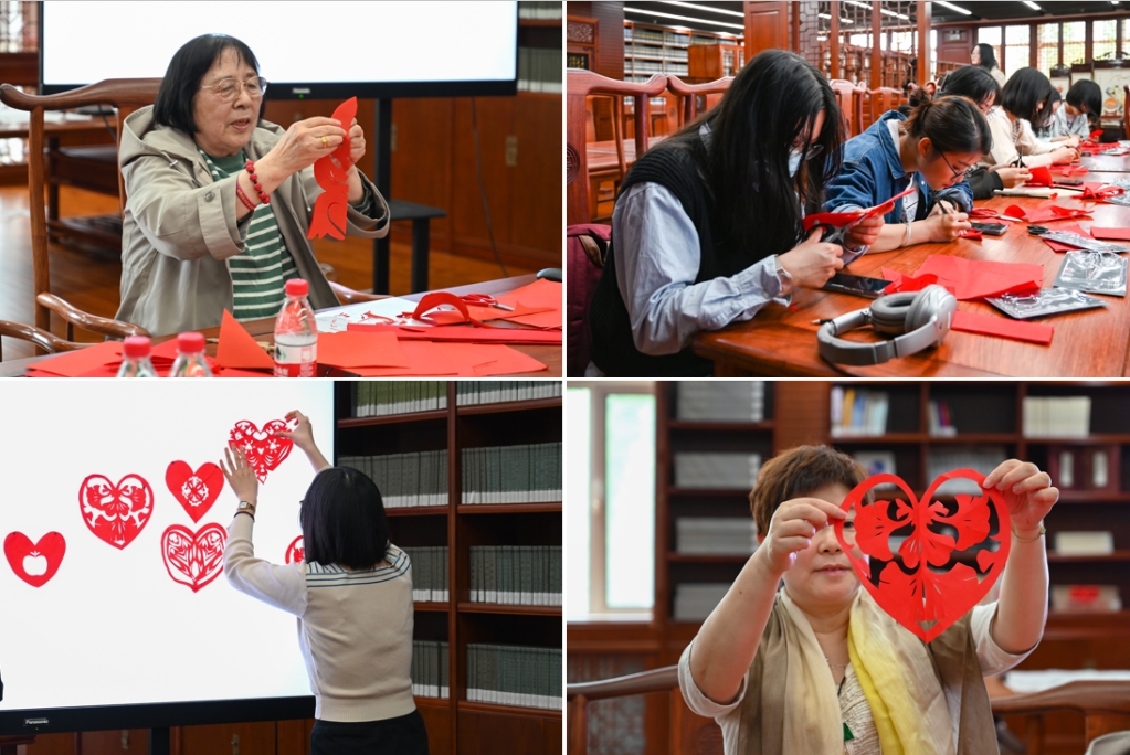 剪纸,是中国各种民俗活动的重要组成部分。庄河剪纸保持了传统剪纸的共性特征,有质朴而不失精美,豪放而不失严谨,雅俗共赏的剪纸风格。庄河剪纸2008年入选国家级非物质文化遗产名录。5月17日,国家级非遗传承人韩月琴老师来到庄河剪纸工坊,带领师生体验剪纸艺术的魅力。韩月琴老师细致耐心地向大家演示剪纸的步骤,并传授裁剪的技巧及要领。她鼓励同学们大胆地剪,积极展示剪纸作品,在交流互鉴中发现美,感受美。