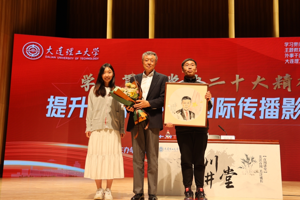 将近两个小时的报告分析透彻、观点新颖、案例生动、寓意深远,师生们近距离聆听了大使的驻外生涯和外交工作中的宝贵经验和体会,具有极强的启发性和指导性。在提问环节,现场师生围绕中英关系发展、中国国际传播能力、中国外交政策等问题积极提问,刘晓明逐一与师生交流,现场氛围热烈。为表达敬意,青年学生代表绘制一幅国画肖像赠送给刘晓明作为留念。