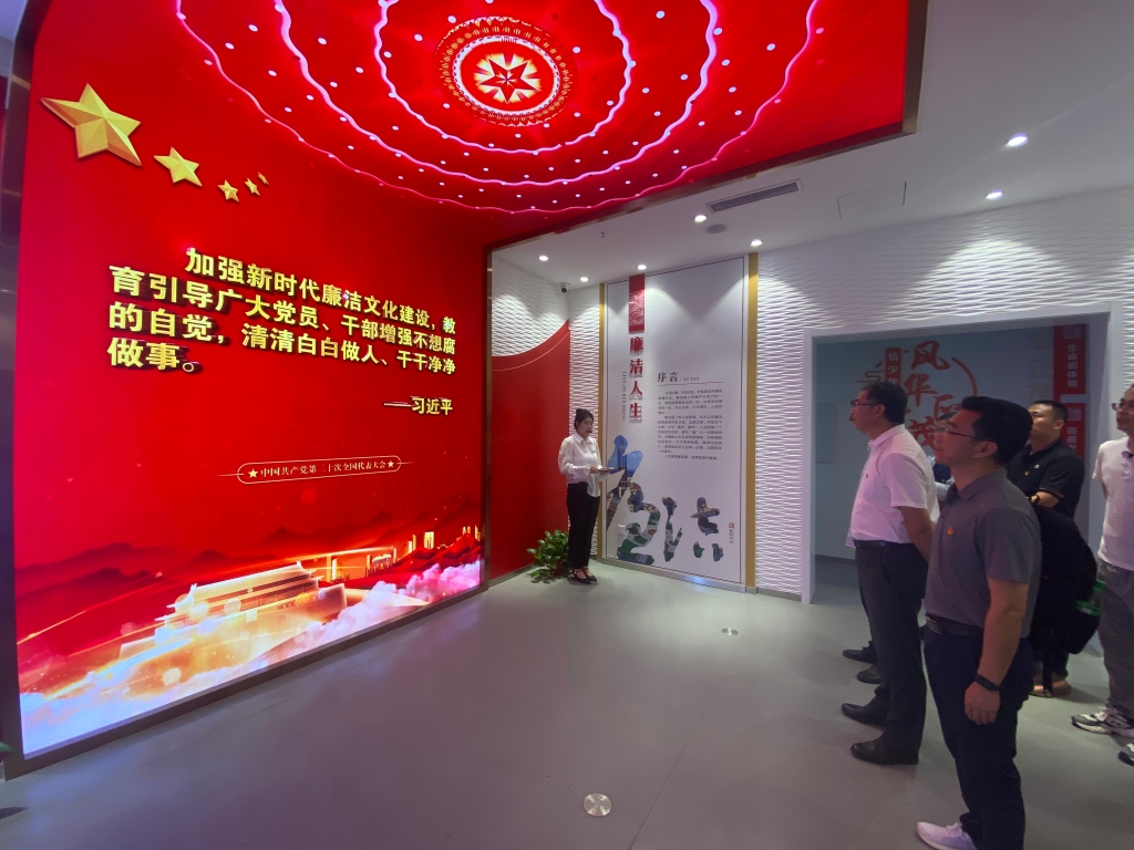 在廉洁人生体验馆里,跟随讲解员的脚步,大家认真观看宣传短片“墨梅”,聆听了习近平总书记亲述“不要人夸好颜色,只留清气满乾坤”的谆谆教导。在“恰同学少年,风华正茂”“正盛年,奋发有为”“惜尊年,不辱使命”展厅,党员干部通过参观3D裸眼交互式展厅、沙画视频、触摸墙解锁百年党史,学习“红船曙光”,体验360行多点互动和换装演示,穿过“警示之门”,模拟“人生八大关”等沉浸式感受廉洁文化在人生“少年、盛年、尊年”三个阶段的特殊意义和深刻内涵,让廉洁文化深植人生发展的各个阶段。
