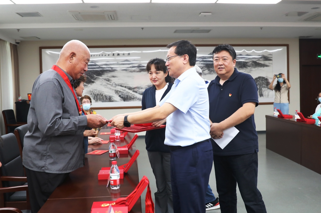 在“七一”建党节来临之际,6月20日上午,学校在伯川图书馆多功能厅举行2023年“光荣在党50年”纪念章颁发仪式暨“话传统、谈复兴、聚力量”座谈会,校党委副书记宋丹为到场的18位老党员逐一佩戴“光荣在党50年”纪念章,向老党员致以崇高的敬意。会议由离退休党委书记刘宇彤主持。