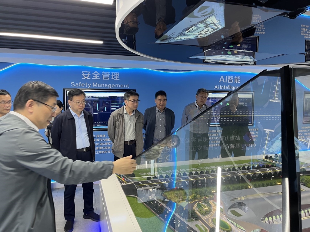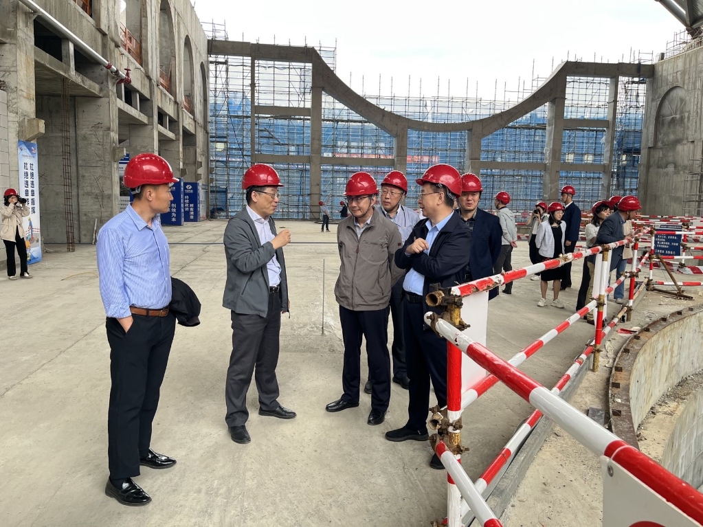 调研组随后来到位于杭州市余杭区未来科技城的超重力实验室。在项目建设现场,调研组与工程建设指挥部开展座谈。工程部副总指挥朱宇恒同志介绍了实验室建设基本情况,工程进展以及项目重点和难点。我校基建处处长李昕介绍了即将开始建设的深海工程实验室项目,双方分享了各自的经验和做法。