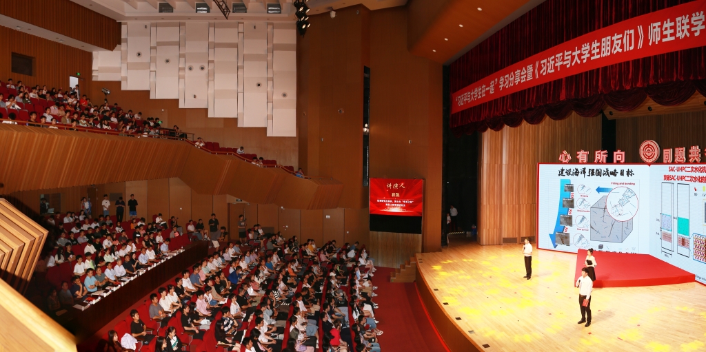 学习分享会创新性地融合演讲、音诗画等多种形式,配合新颖的舞台多媒体技术,学科带头人、青年科学家、思政班主任、专业班主任、辅导员等优秀教师代表与本硕博优秀学子同台,展示教师群体领学范学、学生骨干研学带学、普通学生广学融学的三级串联学习和师生不同群体、班团、支部、教研室不同组织同题共学、同题共答的并联学习成效,拉近青年与习近平总书记的距离,真切感受党中央对青年一代的亲切关怀和殷切期望,为走好人生路指明正确航向,同时推动主题教育往深里走、往实里走、往心里走。