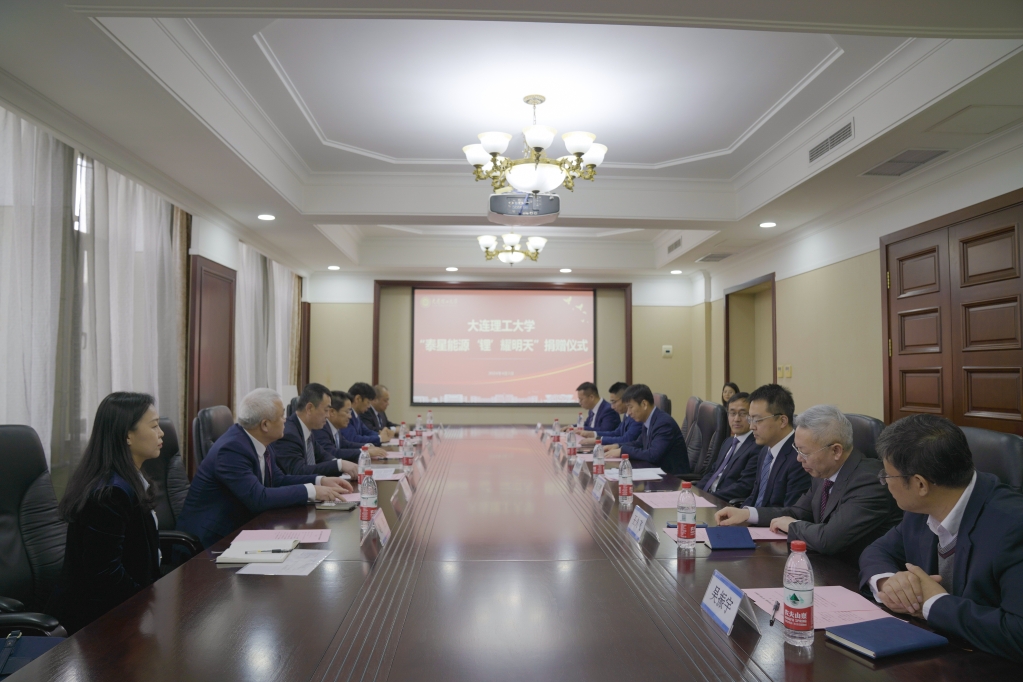 张言军欢迎大连泰星能源有限公司一行的到来,并感谢泰星能源对大工的大力支持。他表示,泰星能源始终将“责任”摆在企业价值观的重要位置,植根东北、大连,携手大工,深挖育人内涵,诠释了新时代本地企业肩负的崇高使命,希望未来双方以此次捐赠和交流为契机,进一步深化教育、科技、人才方面的战略合作,为人才培养和社会发展作出更大贡献。