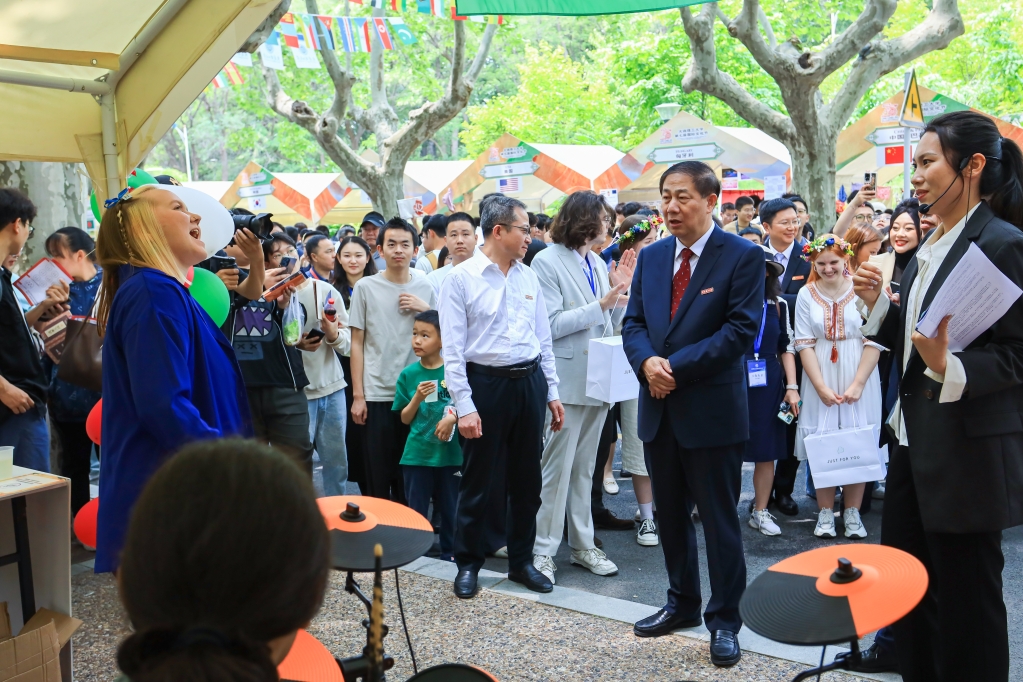 校党委书记项昌乐出席开幕式,并与留学生互动。