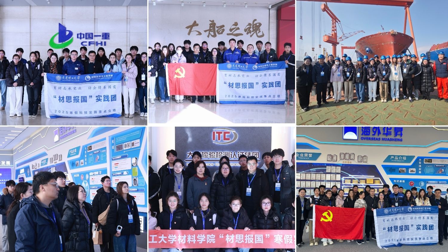 “材思报国”实践团追溯先辈足迹,感悟革命精神,探寻大国重器的材料力量。他们先后走访旅顺日俄监狱、旅顺潜艇博物馆和大连中华工学会旧址等红色教育基地,坚守材料人的红色信仰;前往中国一重大连核电石化有限公司,了解一重核电的发展历程及核电装备制造的关键技术与难点,向着精益求精、追求卓越的大国工匠努力跃进;走访大连船舶重工集团、大连海外华晟电子科技有限公司、英特尔半导体(大连)有限公司以及大连检验检测认证集团,深入思考“东北振兴,青年何为”的命题。