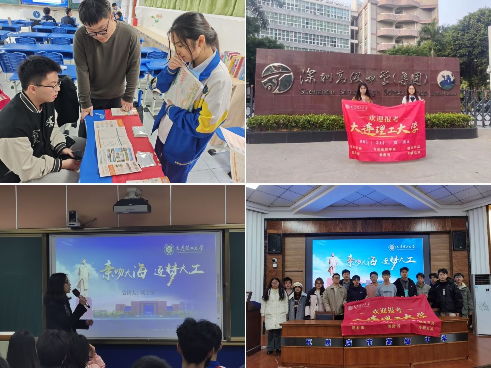 三十支母校行实践团以温情为纽带,架起高校与中学的育人桥梁。广州真光中学实践团以“魅力大工”主题宣讲点燃学子的大学梦,用“一对一”咨询破解高三学子的焦虑:“学长教我如何用思维导图拆分理综大题,瞬间找到了复习方向!”;深圳高级中学实践团的PPT上,“时间管理九宫格”“心态调适呼吸法”等实用锦囊引发热烈讨论;肇庆中学实践团创新开设“法学模拟调解工坊”,让高中生化身“见习调解员”,在模拟劳资纠纷中感受“法律不是冰冷的条文,而是守护公平的温度”;瓦房店高中实践团将大工文创周边化作“梦想信物”,一位收到金属书签的学妹说:“学长说这是用材料学院研发的耐蚀合金制成的,我要带着它冲刺高考!”