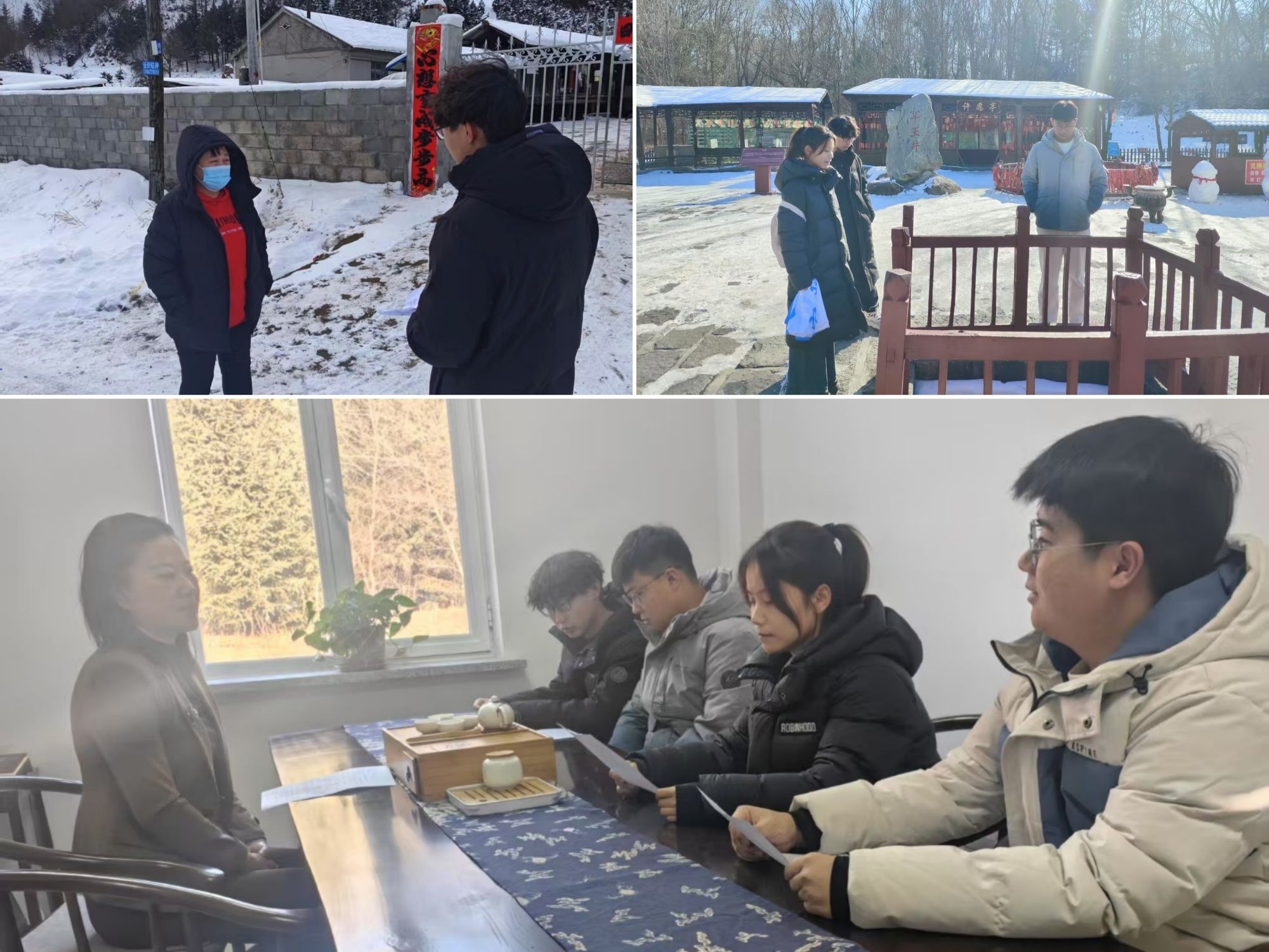 三支文化实践团在传统与现代的碰撞中寻找答案。“寻根探艺术”团队深入庆阳香包绣坊,记录八旬非遗传承人李淑琴“针脚里绣出百年吉祥纹”的坚守,在西安扎染工坊,学生们浸染蓝靛时惊叹:“《诗经》里的‘终朝采蓝’原来藏着低碳智慧!”“材起非遗·槐香晋韵”团队跋涉三晋大地,从东湖醋园“夏伏晒、冬捞冰”的古法酿造,到孝义皮影幕布后的“十指翻飞演尽忠奸”,他们用镜头记录濒危技艺,撰写五万字资政报告呼吁“让推光漆器纹样走进工业设计”。抱“材”归乡寒假实践团积极探索甘肃非遗文化“社火”的数字化创新与八步沙林场冬季植树技术的实践:成员亲身体验舞狮、舞龙和秧歌等形式,挖掘其中内涵,体验沙画以及沙漠植树,为乡村振兴与生态治理提供青年智慧,提供大工智慧。