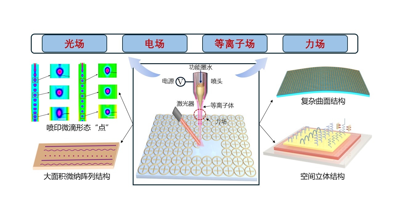 项目简介:微纳打印技术具备纳米精度制造、微纳米尺度制造和跨尺度制造能力,在柔性电子、智能蒙皮、极端探测等领域具有广泛的应用前景。本项目发明了等离子体聚焦/激光辅助/正交力场电流体打印技术,开发出纳米尺度/曲面共形/空间立体系列打印装备,突破大面积微纳阵列结构、曲面共形微纳结构、跨空间纳米结构制造瓶颈,实现了微纳电子器件制造从“长流程”到“短流程”的技术变革。