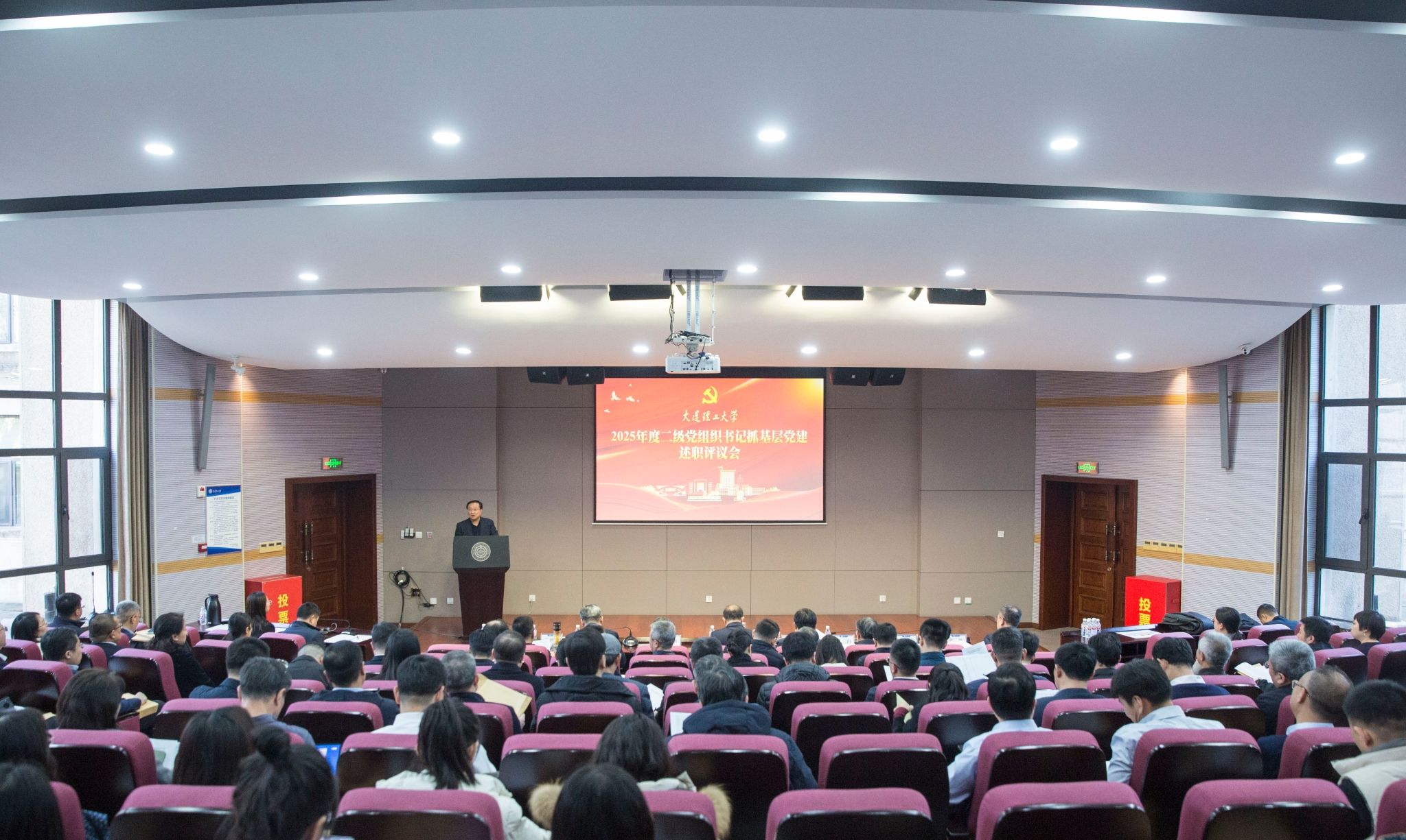 全校二级党组织书记以“一张业绩表、一篇述职报告”方式进行书面述职。14位二级党组织书记现场述职,围绕各单位2025年抓基层党建工作情况及主要成效、当前党建工作存在突出问题和下一步党建工作思路举措等进行汇报。分管或联系校领导履行“一岗双责”进行“一对一”点评,并就存在的问题进行现场提问。
