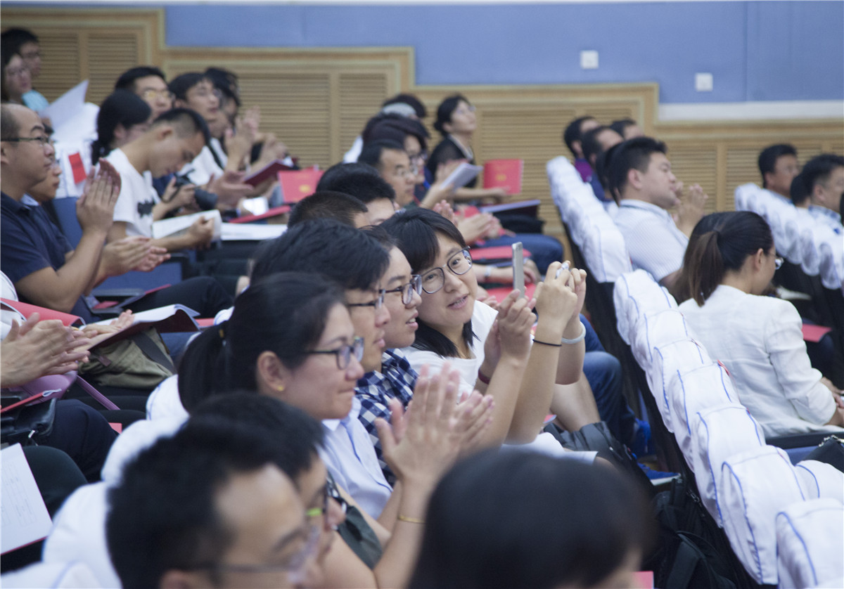 为在全校教师中倡导“以立德树人为天职,做好学生领路人”,进一步弘扬尊师重教的良好风尚,9月8日下午,学校在伯川图书馆报告厅召开了“大连理工大学2017年教师节表彰大会”,对近一年来在教学、科研、管理、服务、一线等工作中取得突出成绩的先进集体和个人进行了表彰与奖励。会场里,老师们关注着每一位获奖者的名字,一同感受作为教师的荣耀!(摄影 王增强 姚璐)
