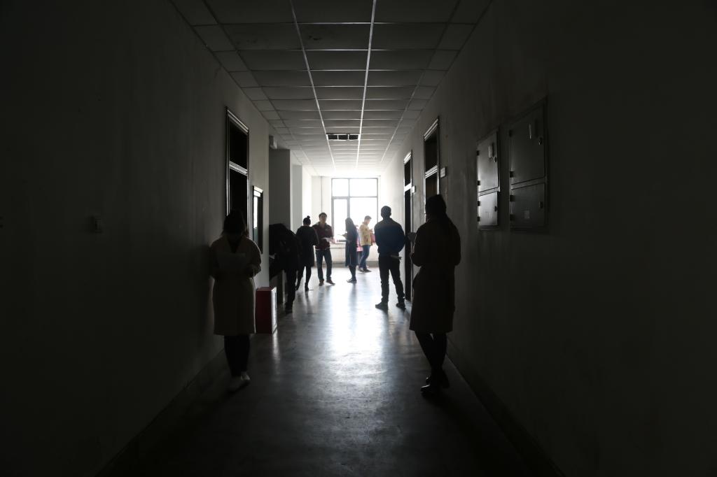 遇到难题向老师求助,负责解答的老师耐心细致,但声音中夹杂着沙哑,也许同样的问题他已经回答了许多遍。