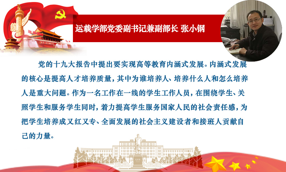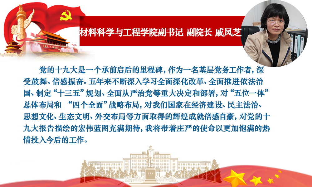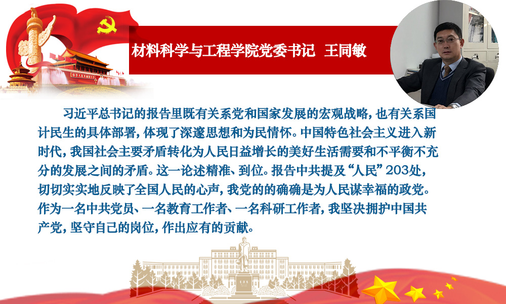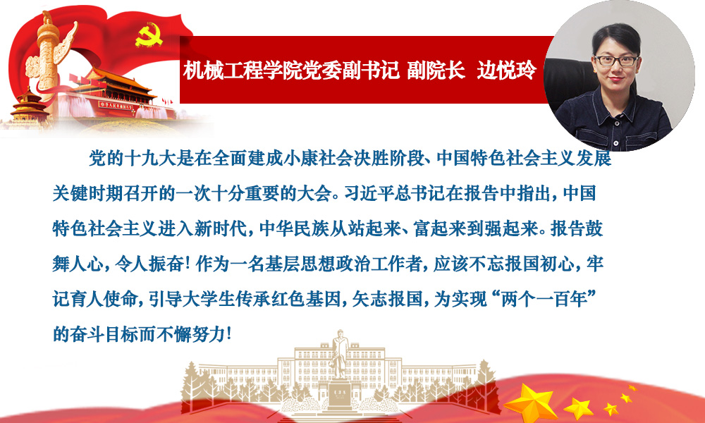 为进一步深入报道大工师生学习贯彻党的十九大精神的情况,党委宣传部、新闻中心与机关党委携手策划“百名师生百字谈”系列宣传报道,关注师生热议党的十九大精神,征集近百名师生对党的十九大精神的学习心得,通过组图形式报道,与全校师生分享,为宣传贯彻党的十九大精神营造浓郁的学习氛围。本次聚焦党政干部,倾听学部学院党政干部对党的十九大精神的解读和体会。(策划 龙海波 王增强 姚璐)