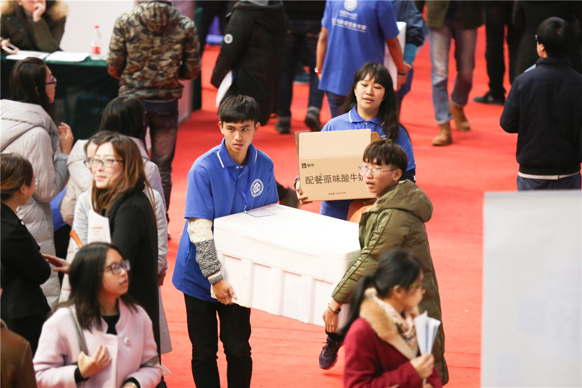 招聘会当天学校为用人单位的面试官们准备了1400多份午餐,还非常贴心地准备了清真餐。(摄影 李剑鸣)
