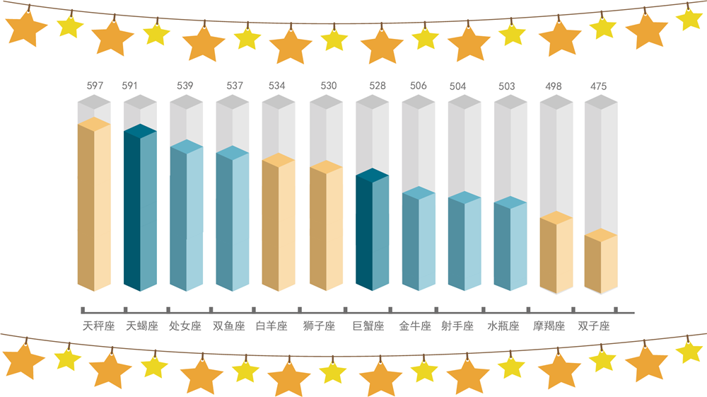 活力充沛的白羊座,勤勉灵巧的金牛座,开朗宽容的双子座……你属于哪一个?今年,人数最多的是天秤座,人数最少的是双子座。无论你是哪个星座,大工都将是你的量身定做!
