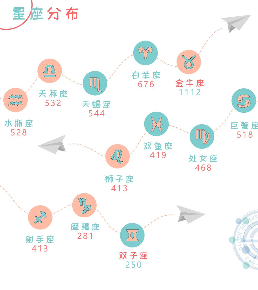 在今年录取的萌新的星座中,稳定踏实的金牛座数量最多,共1112人,灵动活泼的双子座人数最少,有250人,无论你是哪个星座,大工都是你的量身定制!