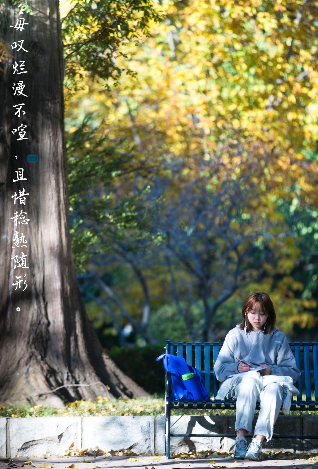 人们都说,大工最美的季节是秋季。银杏金黄,枫叶苍橙,松柏青翠。秋叶吹拂于令希与彩虹桥,一路旋转,一路雀跃,飘落至主楼与伯川。下课铃声悠悠响起,师生在校园的各个角落,用镜头记录一年一度的盛景。周边市民慕名而来,孩童在草坪上嬉戏,长者在高树下休憩,又为金秋增添一分生机。今晨的一场秋雨潇潇至,似在昭示秋的结束,让我们在行将告别之际,再欣赏一次醉美大工秋。(摄影/刘爽 张若天 王增强 汪君平 王翘楚 宫佳泽 胡琛浩 刘建宇 汪子宇 袁钟芮 郑丽雯 朱芳林 陈雷远 阿丽代 于佳禾 任泮虹 叶衎龙 范昕楠 徐海雯 关李庆 卢漫炜 佟潼)