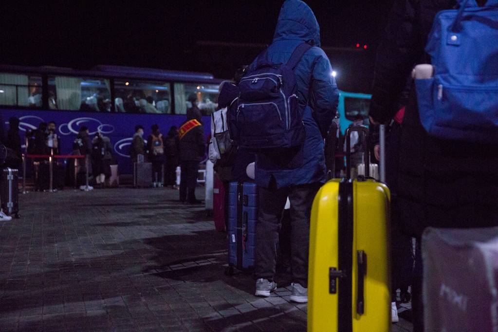 编者按:1月18日,大连理工大学寒假开始,为让同学们平安顺利回家,学校于18日—20日三天开展点对点送站。学校安排60辆送站专车,分批次将近25000名在校生送往机场、火车站、港口等交通口岸,踏上去往31个省市地区的返乡之路。为方便学生快速查验,各交通枢纽开辟离校学生专用绿色通道。18日凌晨4时,寒风凛冽中,车辆已列队,工作人员已列队,返乡同学已列队,为“一路平安,春日归来”这句最简单的期盼和承诺努力着。(摄影/王增强 于舒雯 秦博昱 郑凯心 王奕璇)