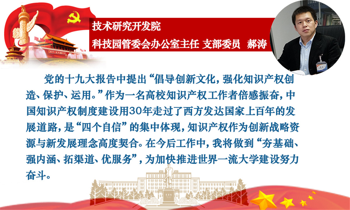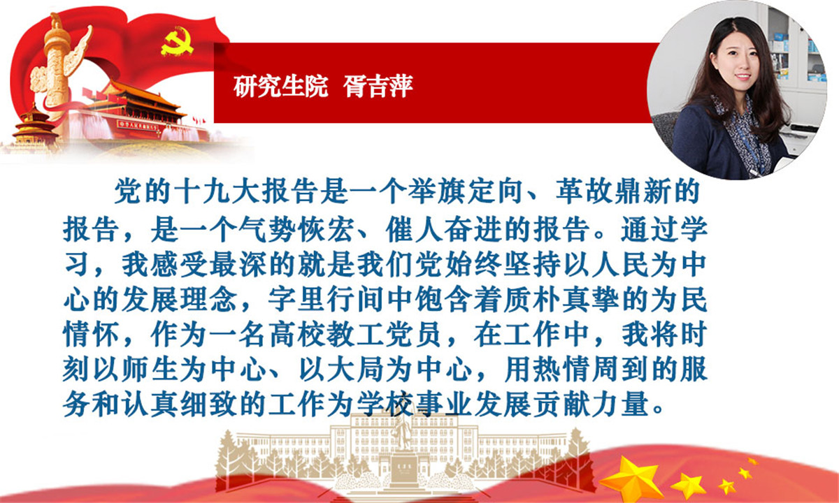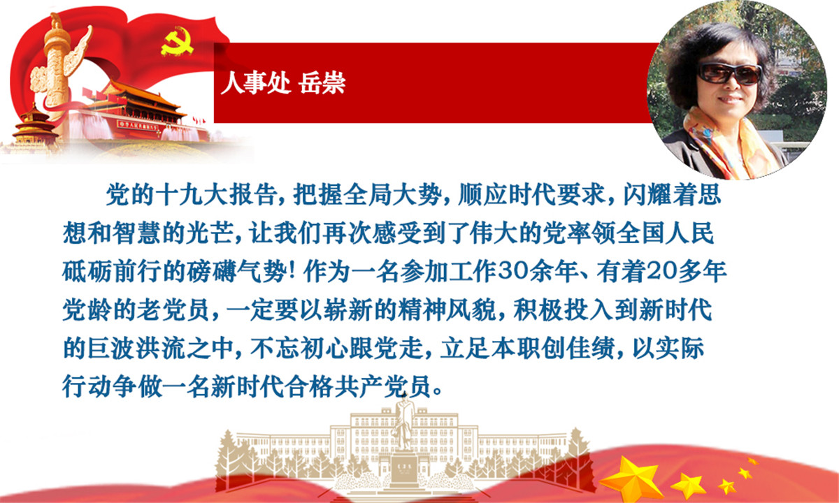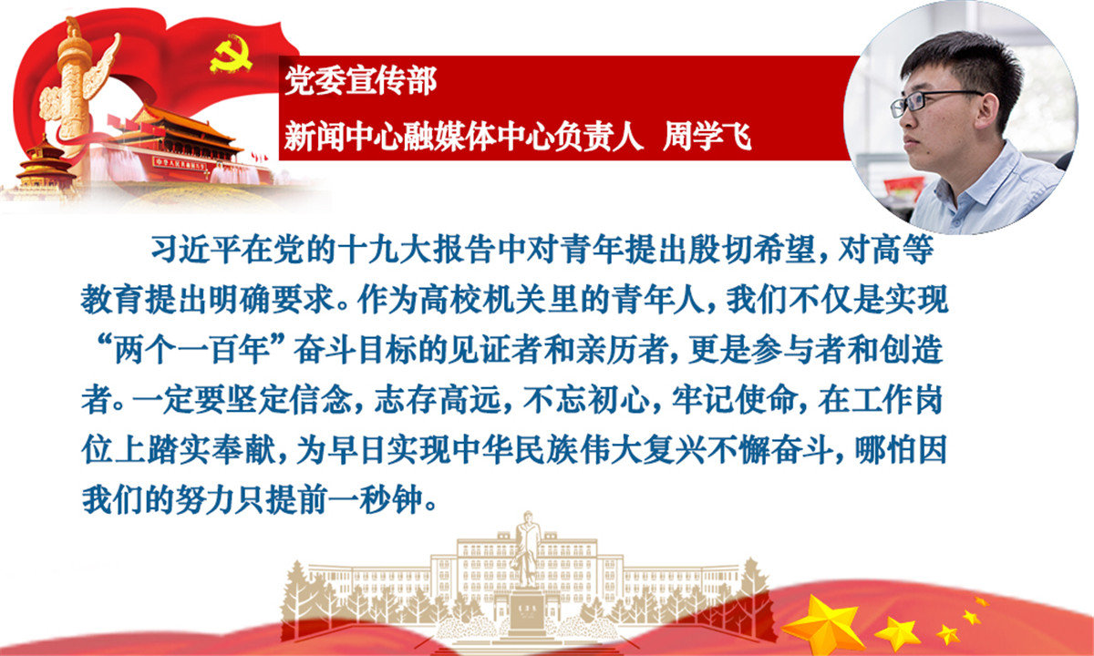 为进一步深入报道大工师生学习贯彻党的十九大精神的情况,党委宣传部、新闻中心策划“百名师生百字谈”系列宣传报道,关注师生热议党的十九大精神,征集近百名师生对党的十九大精神的学习心得,通过组图形式报道,与全校师生分享,为宣传贯彻党的十九大精神营造浓郁的学习氛围。本次聚焦专家学者,倾听机关人员对党的十九大精神的解读和体会。(策划 龙海波 王增强 姚璐)
