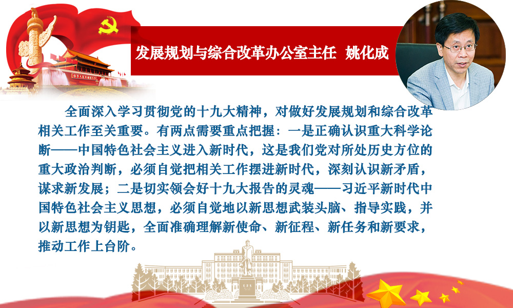 为进一步深入报道大工师生学习贯彻党的十九大精神的情况,党委宣传部、新闻中心与机关党委携手策划“百名师生百字谈”系列宣传报道,关注师生热议党的十九大精神,征集近百名师生对党的十九大精神的学习心得,通过组图形式报道,与全校师生分享,为宣传贯彻党的十九大精神营造浓郁的学习氛围。本次聚焦党政干部,倾听机关党政干部对党的十九大精神的解读和体会。(策划 龙海波 王增强 姚璐)
