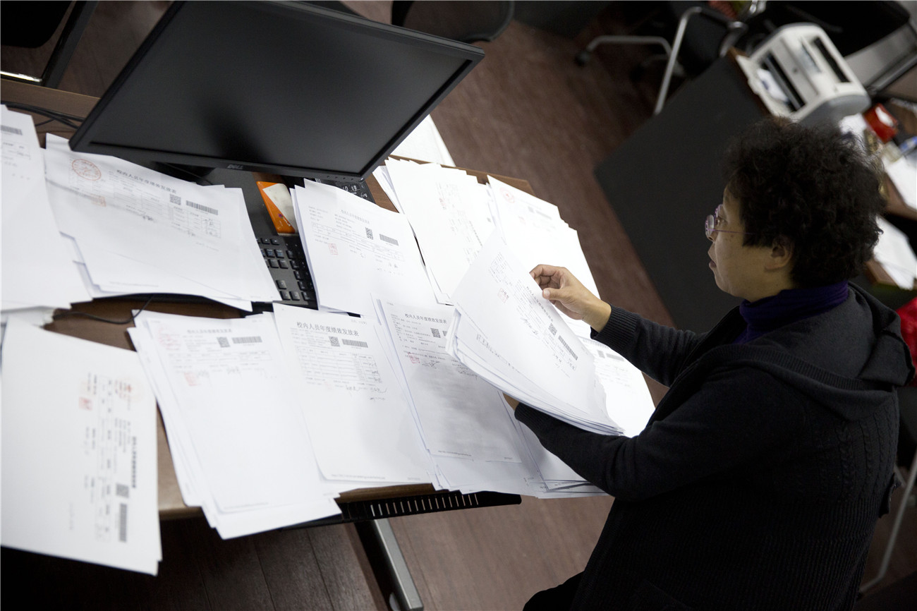 全校45000多名学生的学费收缴,核对,打印收据。票据要一张张打印,一张张盖章。每个学部学院的情况都不同,需要完全靠人工分拣、下发,保证一张不错到学生手中。