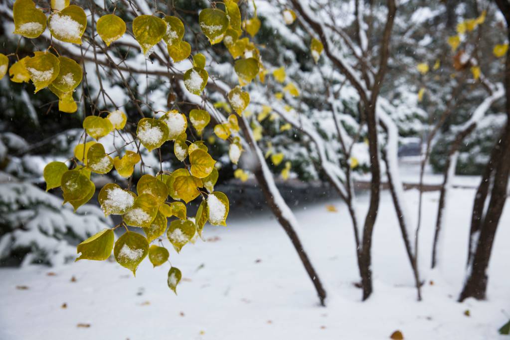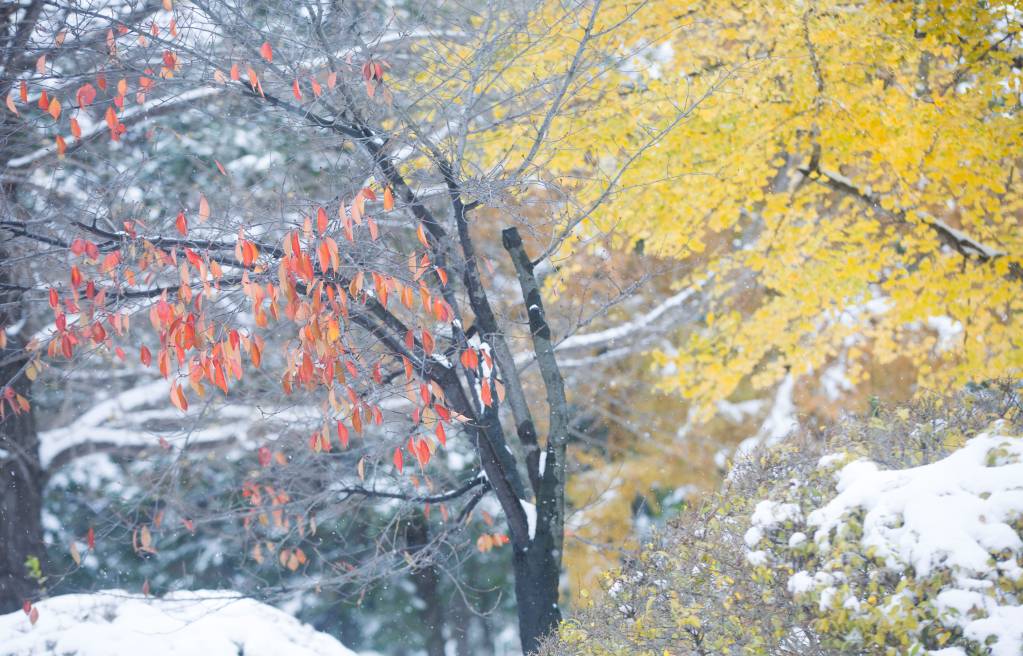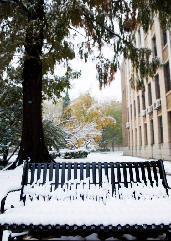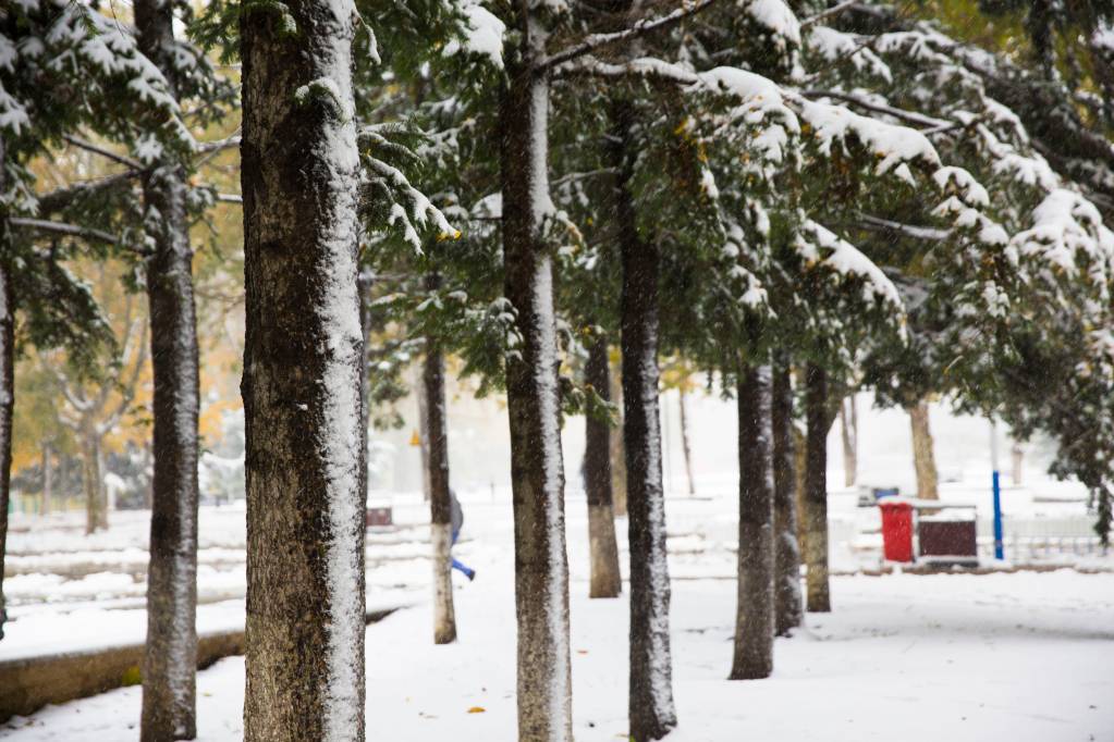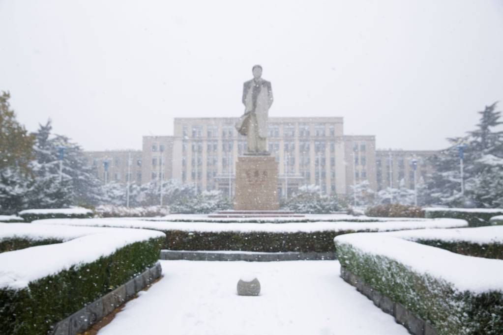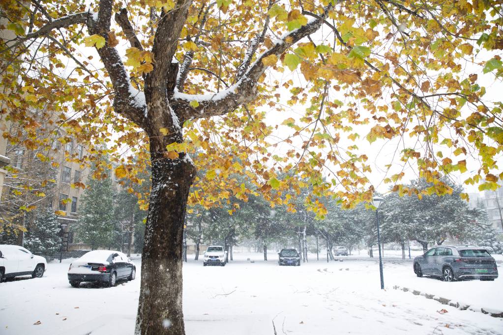 编者按:秋景未尽,冬日已来。受寒潮影响,校园迎来了今冬第一次降雪。飞雪覆盖了整个校园,将未尽的秋描绘的五颜六色,将期盼的冬展现的淋漓尽致,银妆素裹,纯净自然,勾勒出一幅写意的画卷。(摄影 王增强 于舒雯)