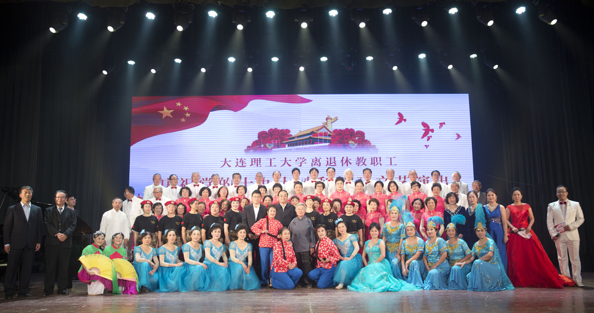 校党委常务副书记姜德学在演出结束后,与演职人员合影,共同祝福伟大祖国繁荣昌盛。