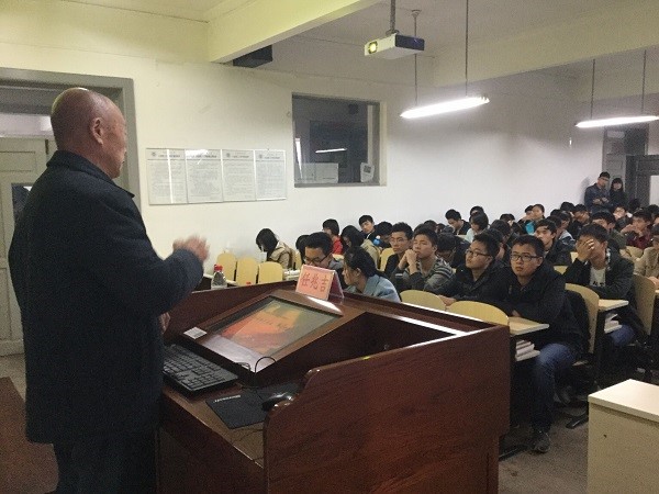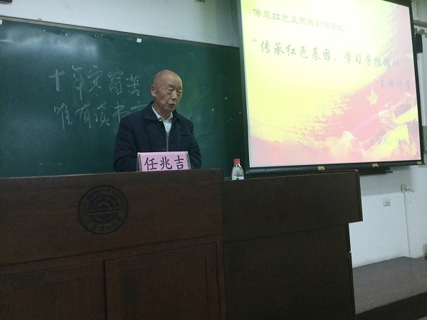 当77岁的任兆吉步履飞快地出现在讲台上,期待已久的同学们随即爆发出如雷的掌声。任老精神矍铄,容光焕发。他认真地看着所有听众,指着自己的名牌自我介绍:“任兆吉”。在接下来的讲述中,其亲切朴实的语言,谦逊的谈吐给同学们留下了深刻的印象。他语速不快,但铿锵顿挫。任老略带口音的讲话,给人以毫无世故之感。